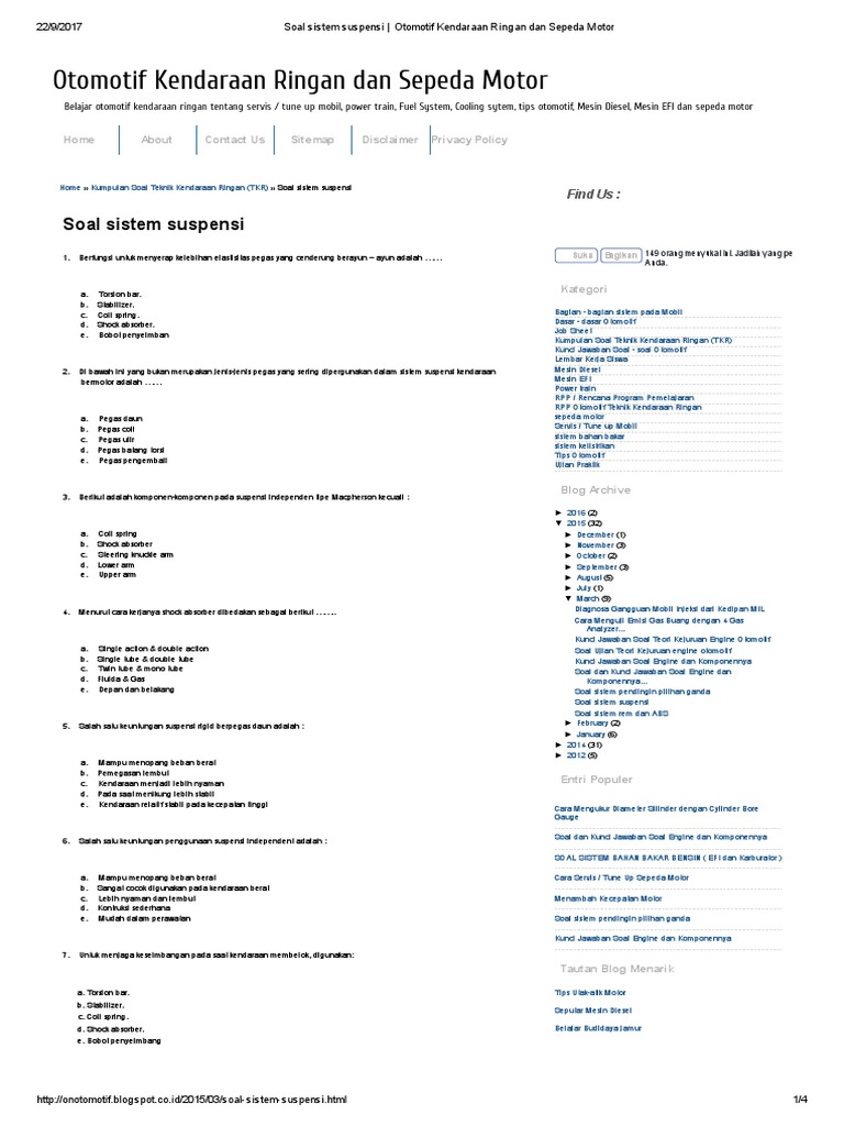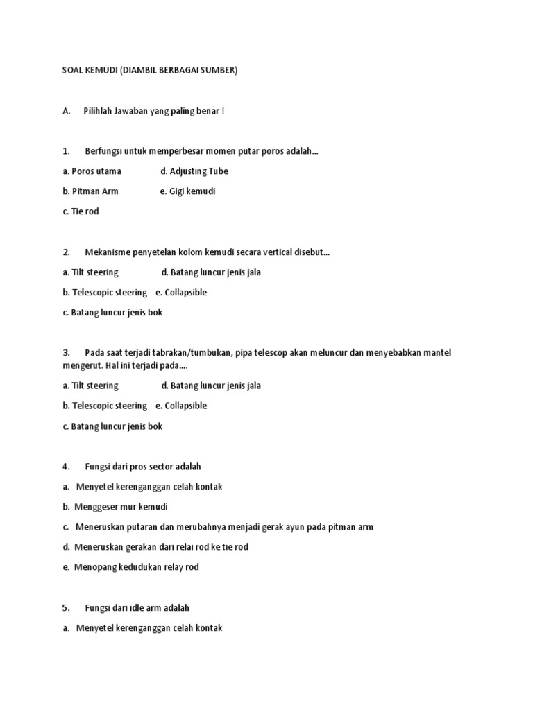 Soal Pilihan Ganda Kelistrikan Otomotif 2 Kelas Xi Tkr Semester 1 Teknik Otomotif Com from 2.bp.blogspot.com Contoh soal power steering dan jawaban. We did not find results for: Maybe you would like to learn more about one of these? Check spelling or type a new query.